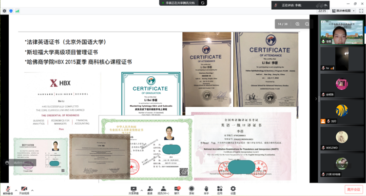 根据疫情防控要求,本次讲座仅通过腾讯会议线上直播的形式进行,由外国语学院英语系副系主任刘衍博士主持,由乐鱼网页版、云大部分学院以及国内部分高校的师生共计160余人参加。李蓓曾任哈佛商业评论特聘翻译、阿里巴巴特聘翻译、China Daily 特聘同传、新加坡使馆签约译员;曾于2021年《生物多样性公约》缔约方大会第十五次会议—生态文明论坛、2019年南南人权论坛、2019年欧亚经济论坛、2018年世界经济论坛、世界神经学大会等大型国际会议担任同传,有丰富的职业翻译经验。