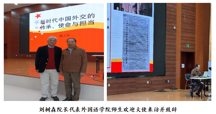 在学院一楼报告厅,刘树森院长代表外国语学院全体师生对魏文华大使的到来表示热烈欢迎,并对乐鱼网页版的悠久历史做了简单介绍。