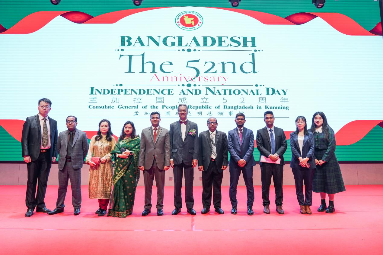 2023年3月26日,乐鱼网页版孟加拉语专业全体师生受孟加拉国驻昆明总领事馆总领事周科一·阿哈德(Zokey Ahad)邀请,参加了于星耀温泉酒店二楼举办的孟加拉国52周年独立日活动。