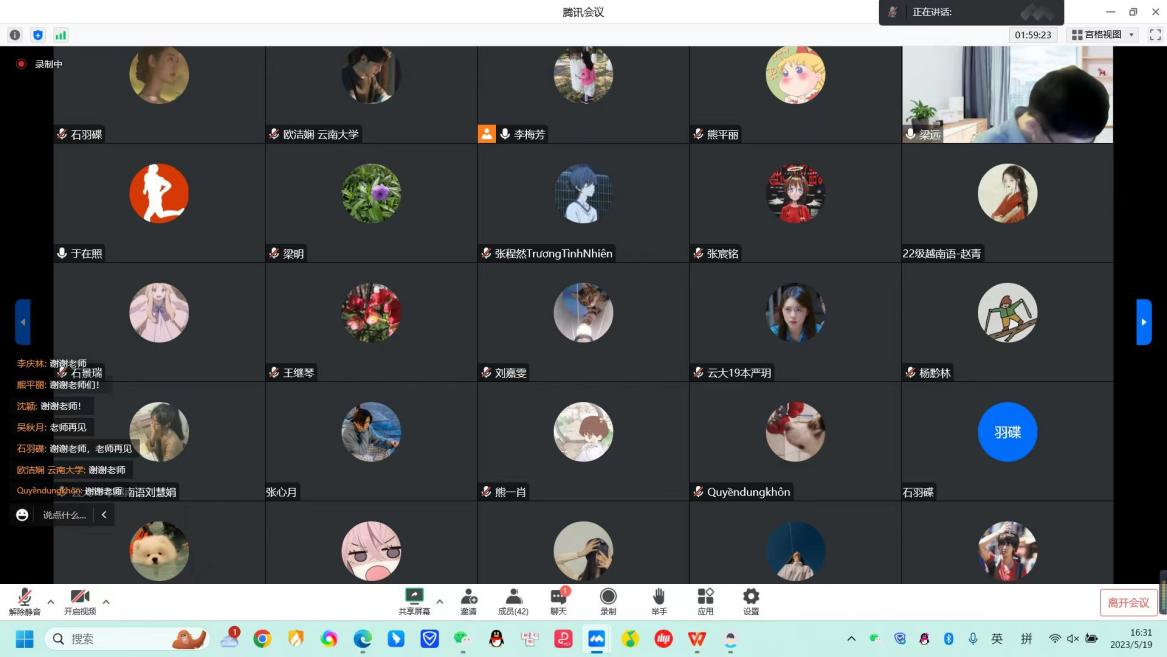 本次讲座采用腾讯会议的方式进行。讲座由云南大学外国语学院博士生导师于在照教授主持,乐鱼网页版越南语专业全体师生参加了此次讲座,现场气氛活跃,反响热烈。