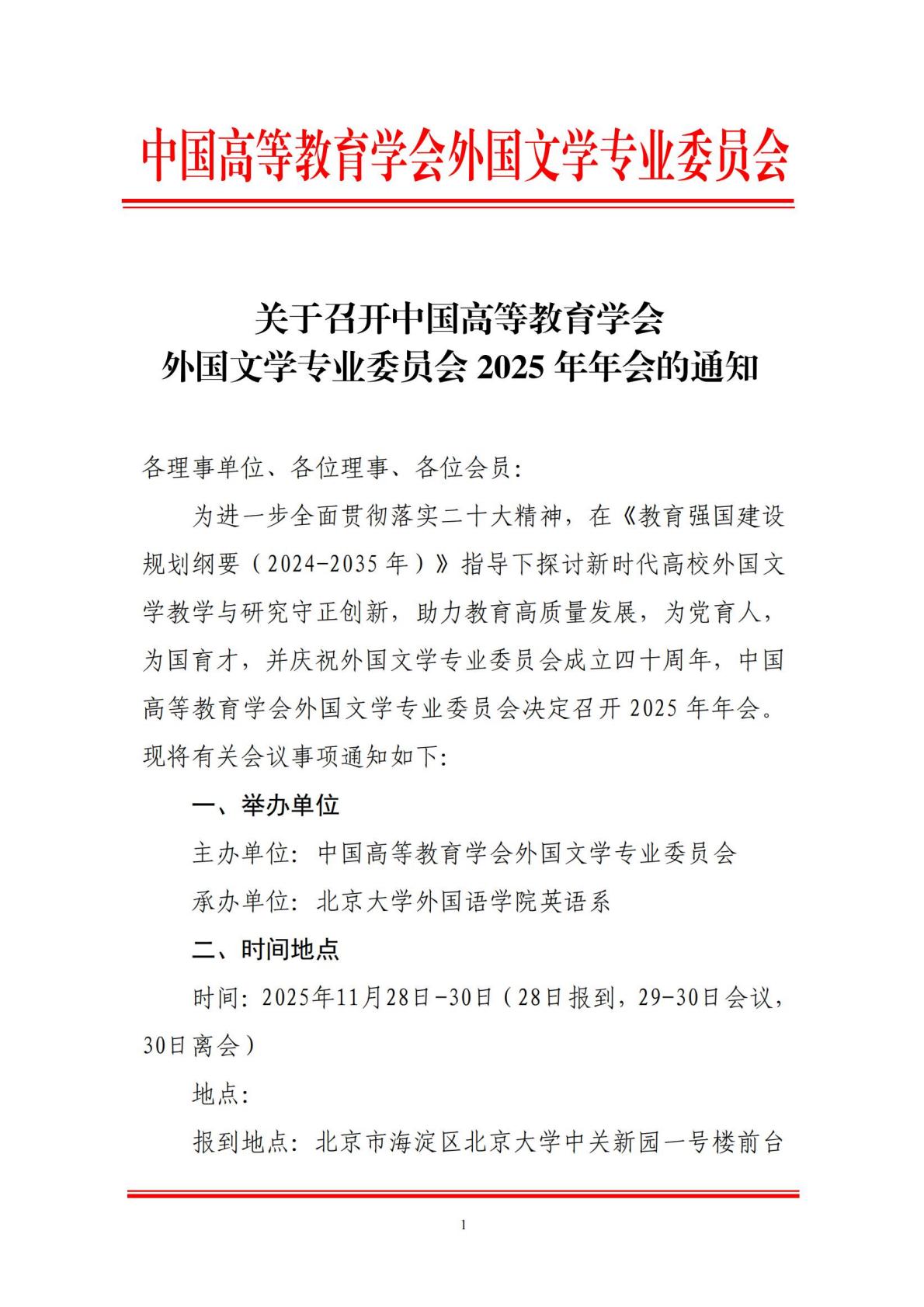 附件下载: 高教学会外国文学专委会2025年学术年会通知(含回执).docx