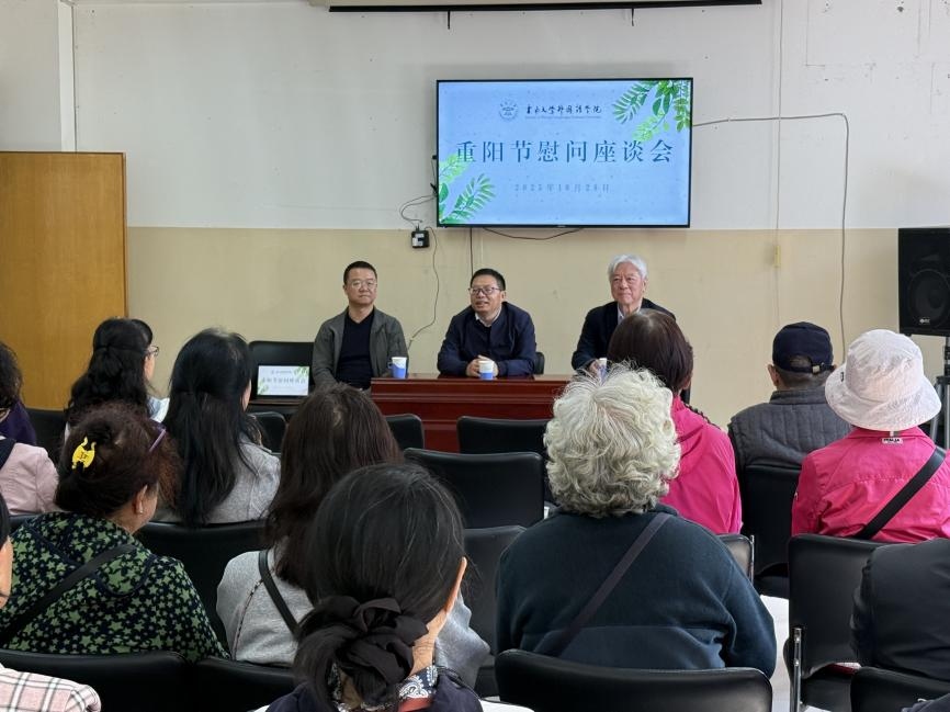 10月28日下午,外国语学院在东陆校区离退休处会议室举行重阳节慰问退休教师座谈会。学院党委书记唐国锋、院长刘树森、副院长王浩及离退休工作负责人唐国淞代表学院慰问离退休教师,与二十余位退休教师欢聚一堂,共叙情谊、共话发展,并前往六位离退休教师家中走访看望。