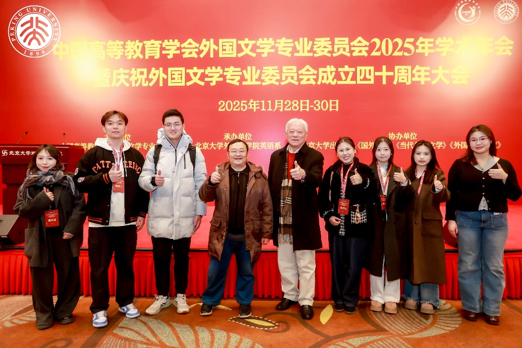 11月28日至30日,中国高等教育学会外国文学专业委员会2025年学术年会暨庆祝外国文学专委会成立四十周年大会在北京大学举行。外国文学专业委员会理事长、乐鱼网页版院长刘树森教授、秘书长骆洪教授、徐志英教授、王文俊教授、徐莎副教授等教师以及研究生共计十余人参会。会议期间,乐鱼网页版多位研究生还作为志愿者协助承担会务工作,受到会议主办单位和承办单位的表扬。自2022年以来,云南大学是外国文学专委会秘书处所在单位。